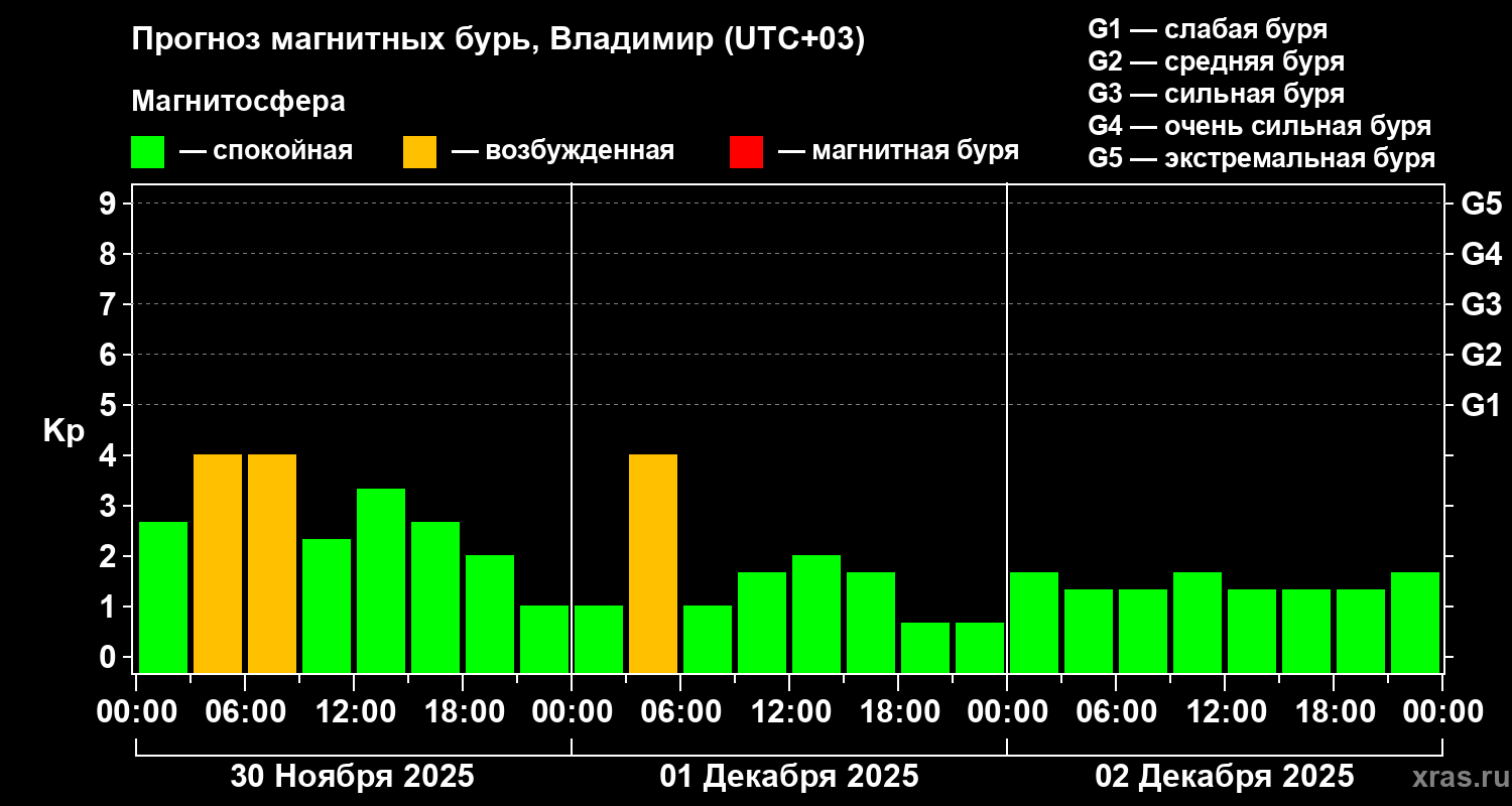 Прогноз магнитных бурь во Владимире на 30 ноября 2025 года