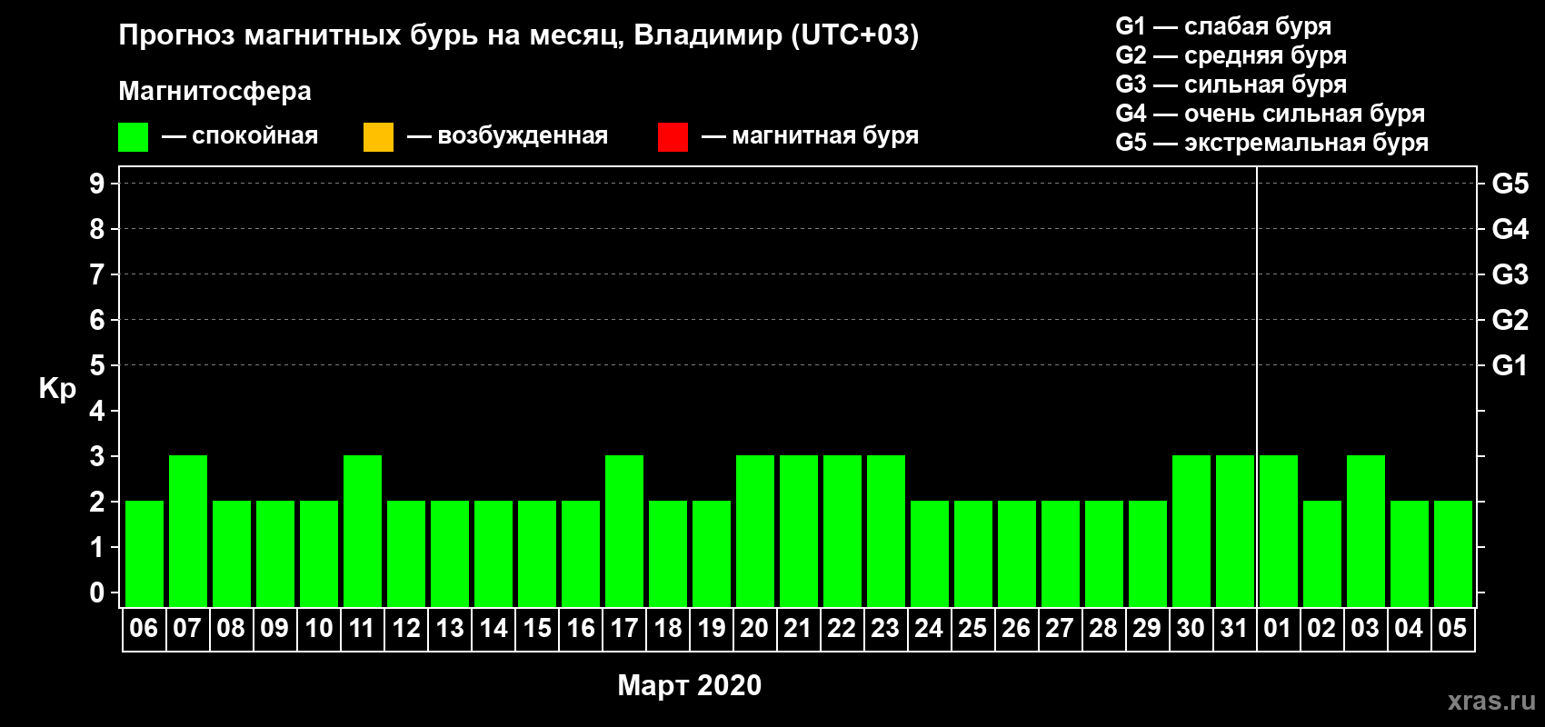 Прогноз магнитных бурь во Владимире — 6 марта 2020 года