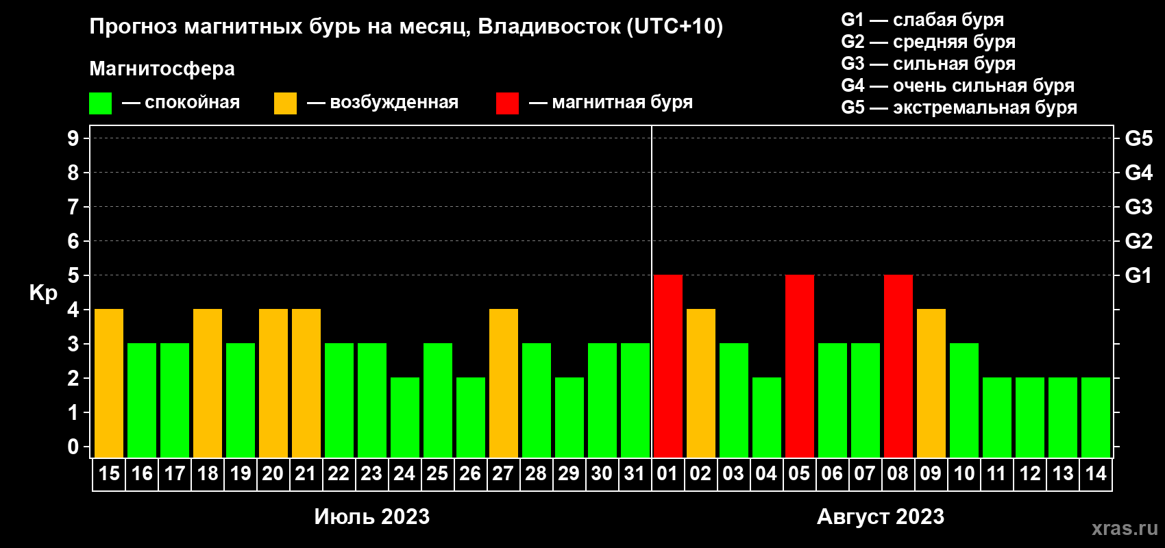 Прогноз магнитных бурь во Владивостоке — 15 июля 2023 года