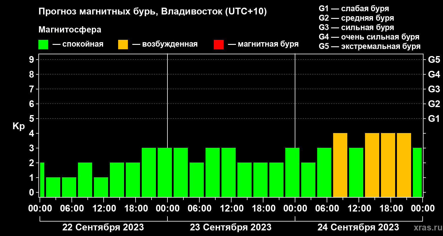 Прогноз магнитных бурь во Владивостоке — 22 сентября 2023 года