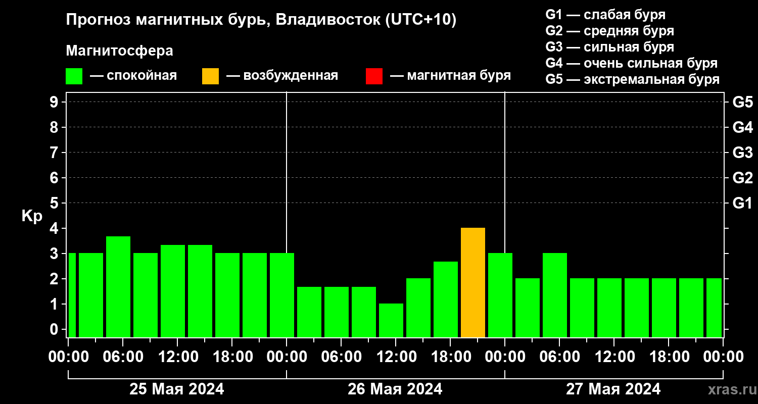 Прогноз магнитных бурь во Владивостоке — 25 мая 2024 года