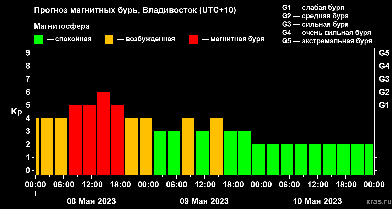 Прогноз магнитных бурь во Владивостоке — 8 мая 2023 года