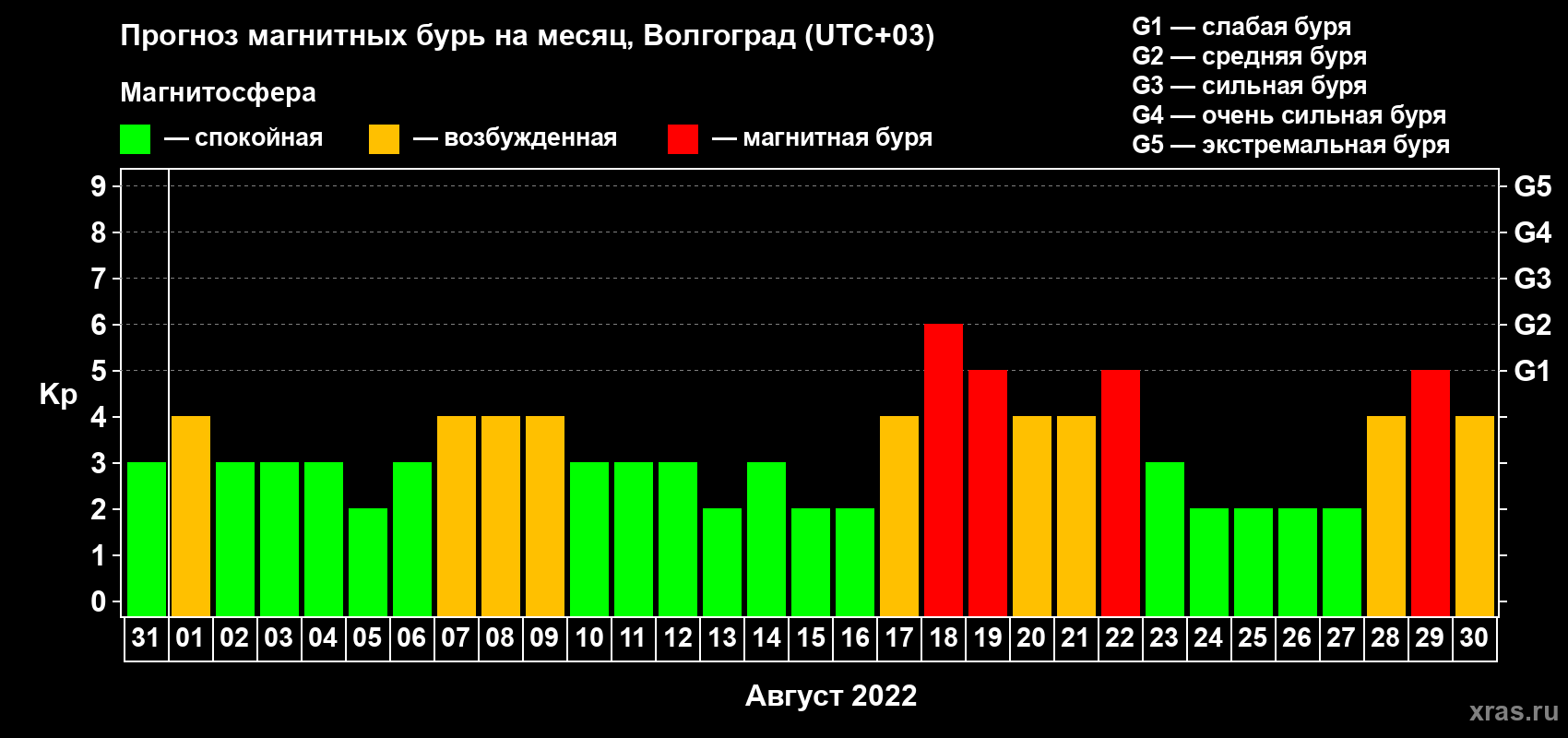 Прогноз магнитных бурь в Волгограде — 31 июля 2022 года