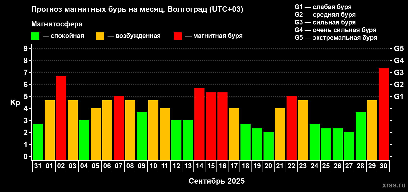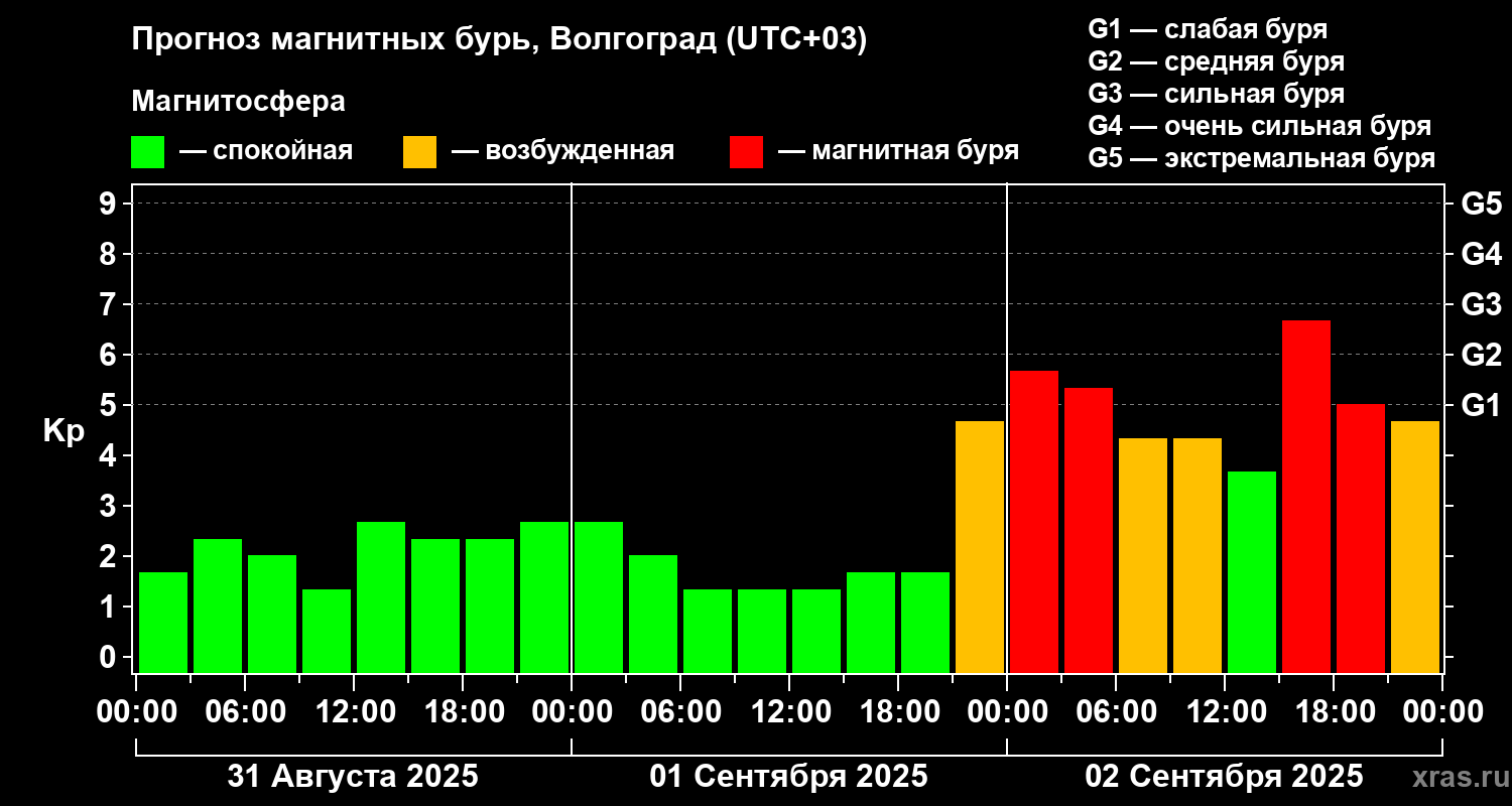Прогноз магнитных бурь в Волгограде — 31 августа 2025 года