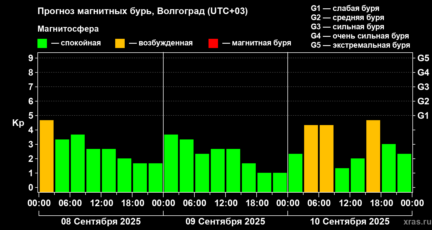 Прогноз магнитных бурь в Волгограде — 8 сентября 2025 года