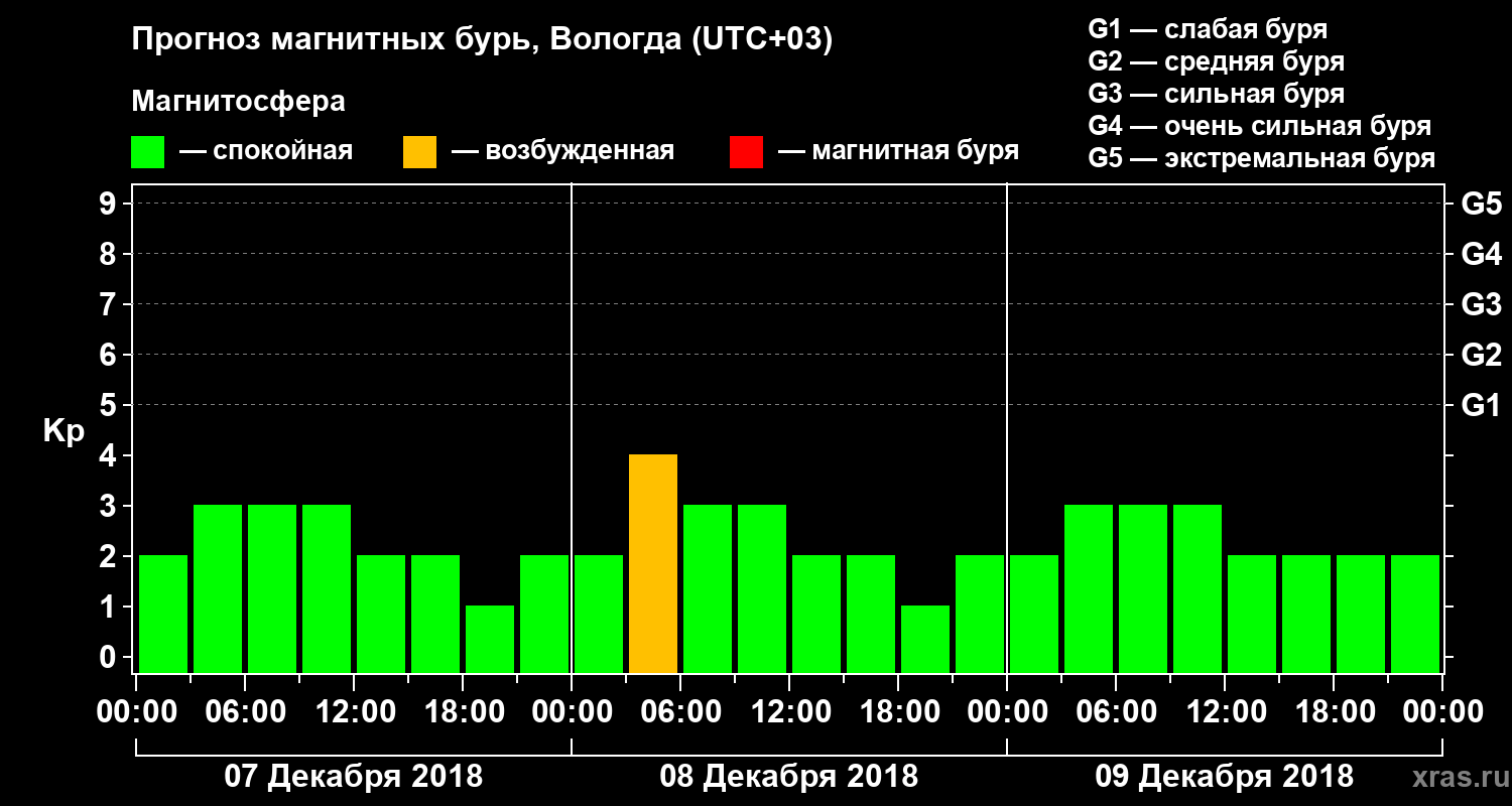 Прогноз магнитных бурь в Вологде на 7 декабря 2018 года