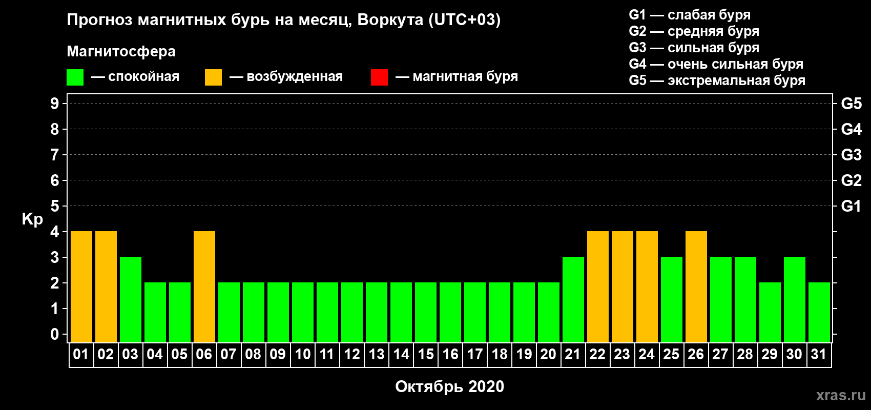 Прогноз магнитных бурь в Воркуте — 1 октября 2020 года