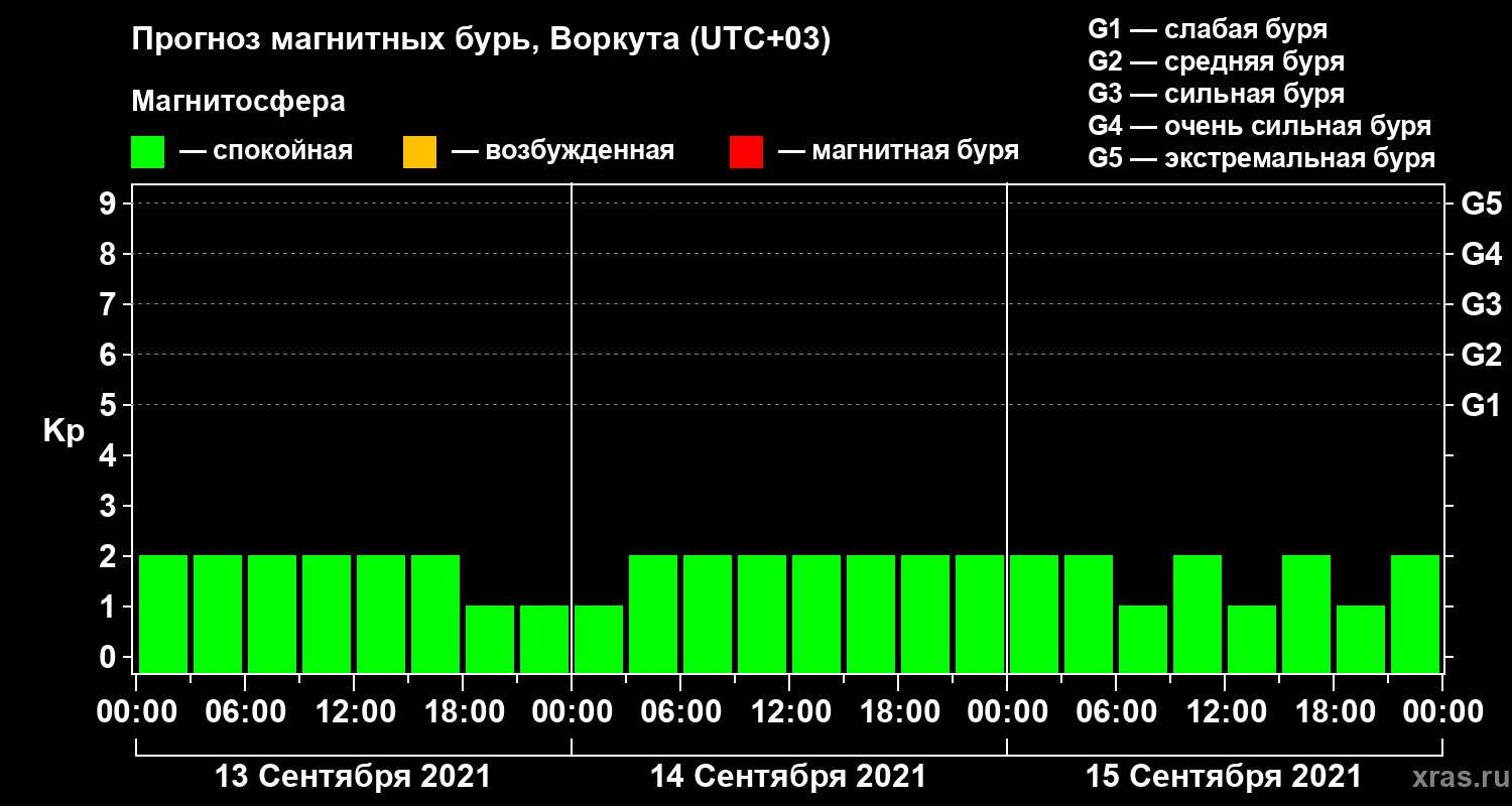 Прогноз магнитных бурь в Воркуте — 13 сентября 2021 года
