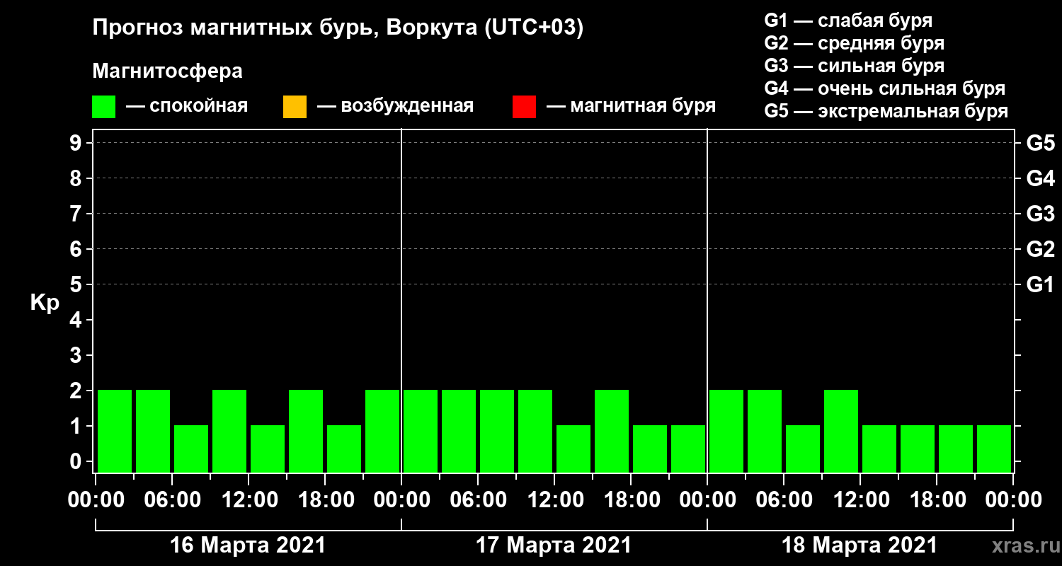 Прогноз магнитных бурь в Воркуте — 16 марта 2021 года