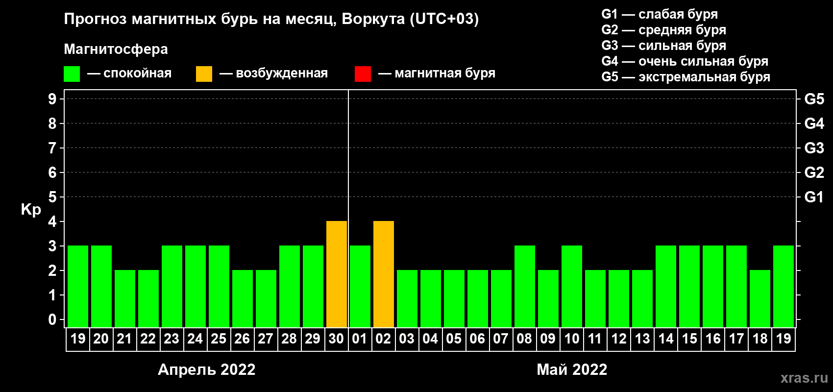 Прогноз магнитных бурь в Воркуте — 19 апреля 2022 года