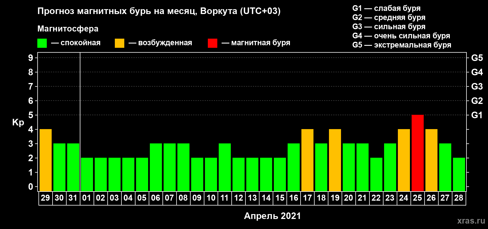 Прогноз магнитных бурь в Воркуте — 29 марта 2021 года