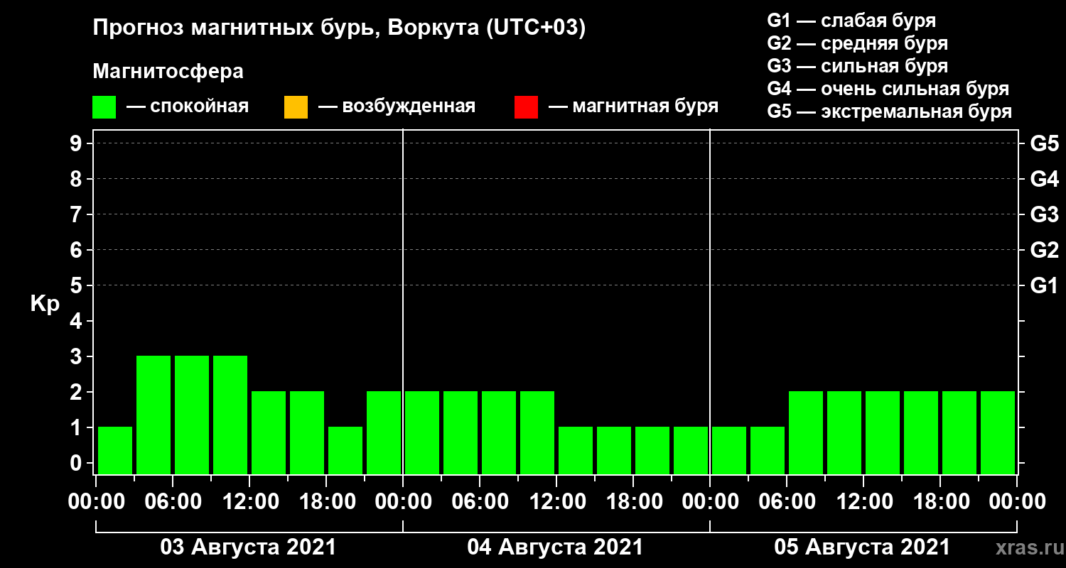 Прогноз магнитных бурь в Воркуте — 3 августа 2021 года