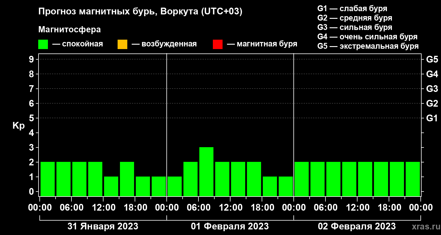 Прогноз магнитных бурь в Воркуте — 31 января 2023 года
