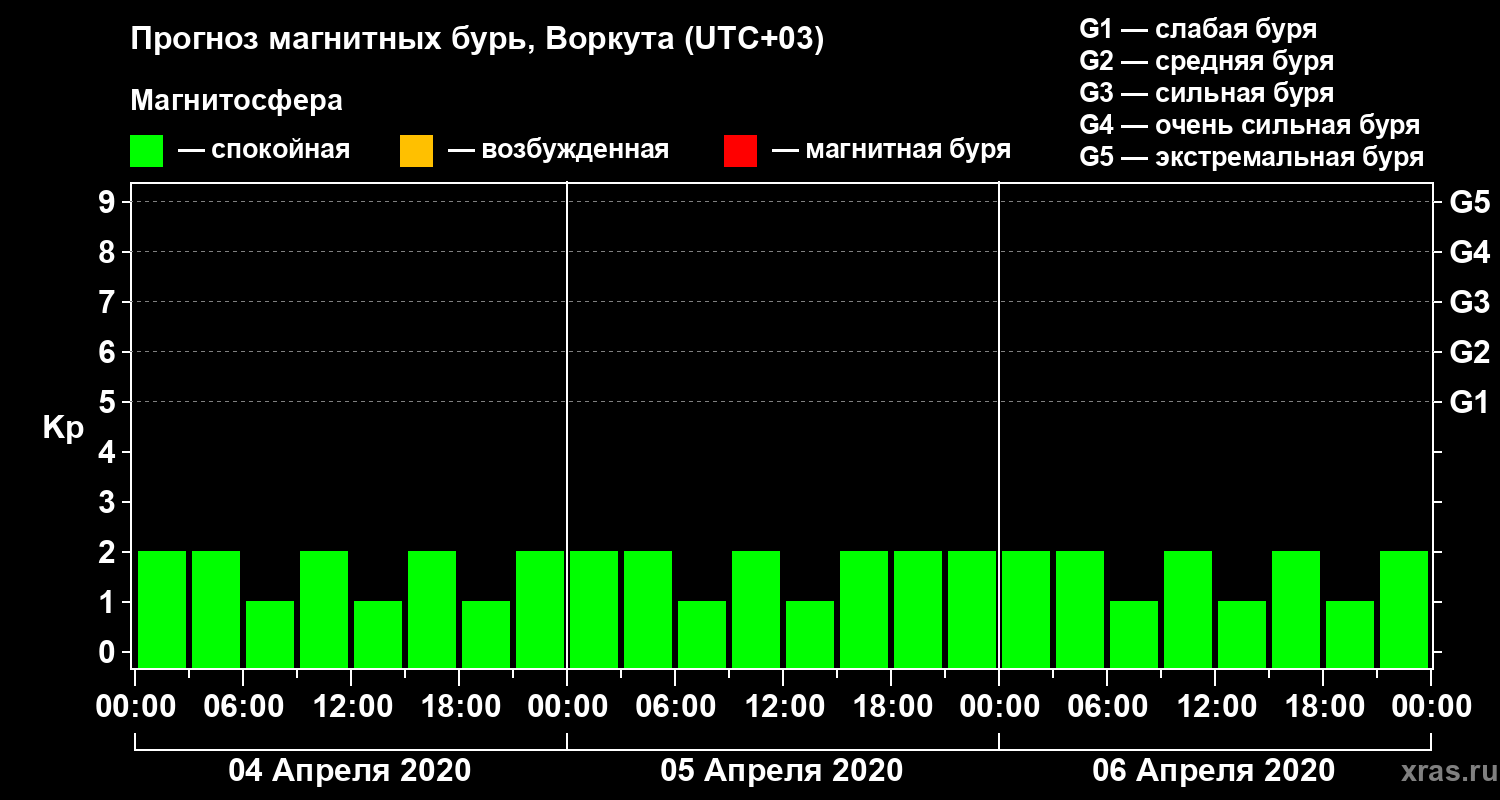 Прогноз магнитных бурь в Воркуте — 4 апреля 2020 года