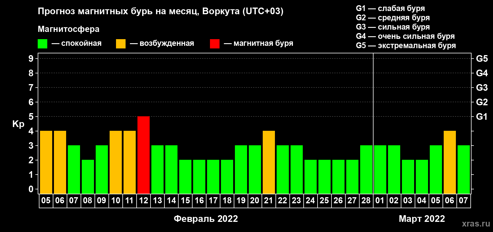 Прогноз магнитных бурь в Воркуте — 5 февраля 2022 года