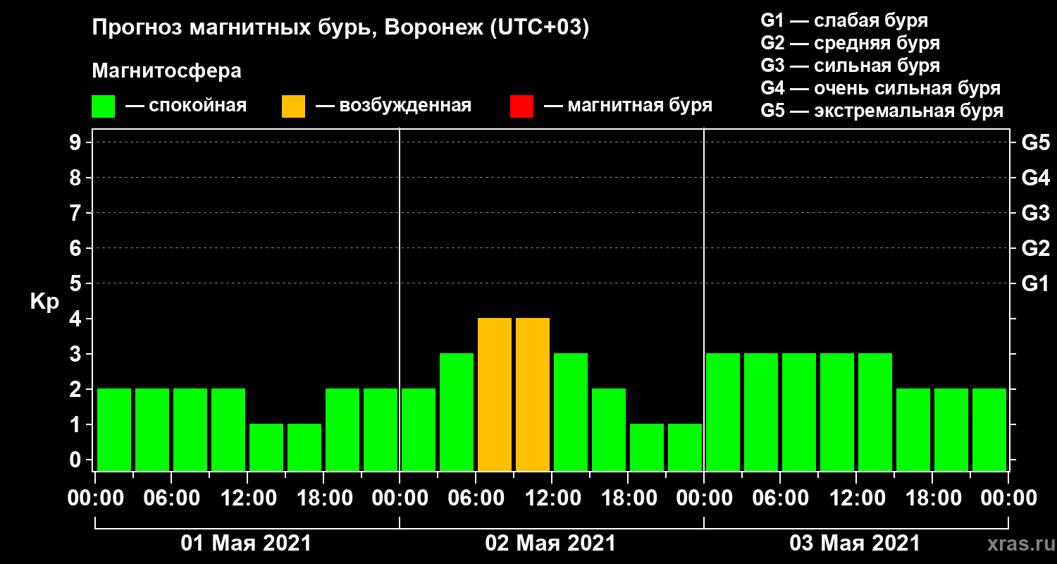 Прогноз магнитных бурь в Воронеже на 1 мая 2021 года