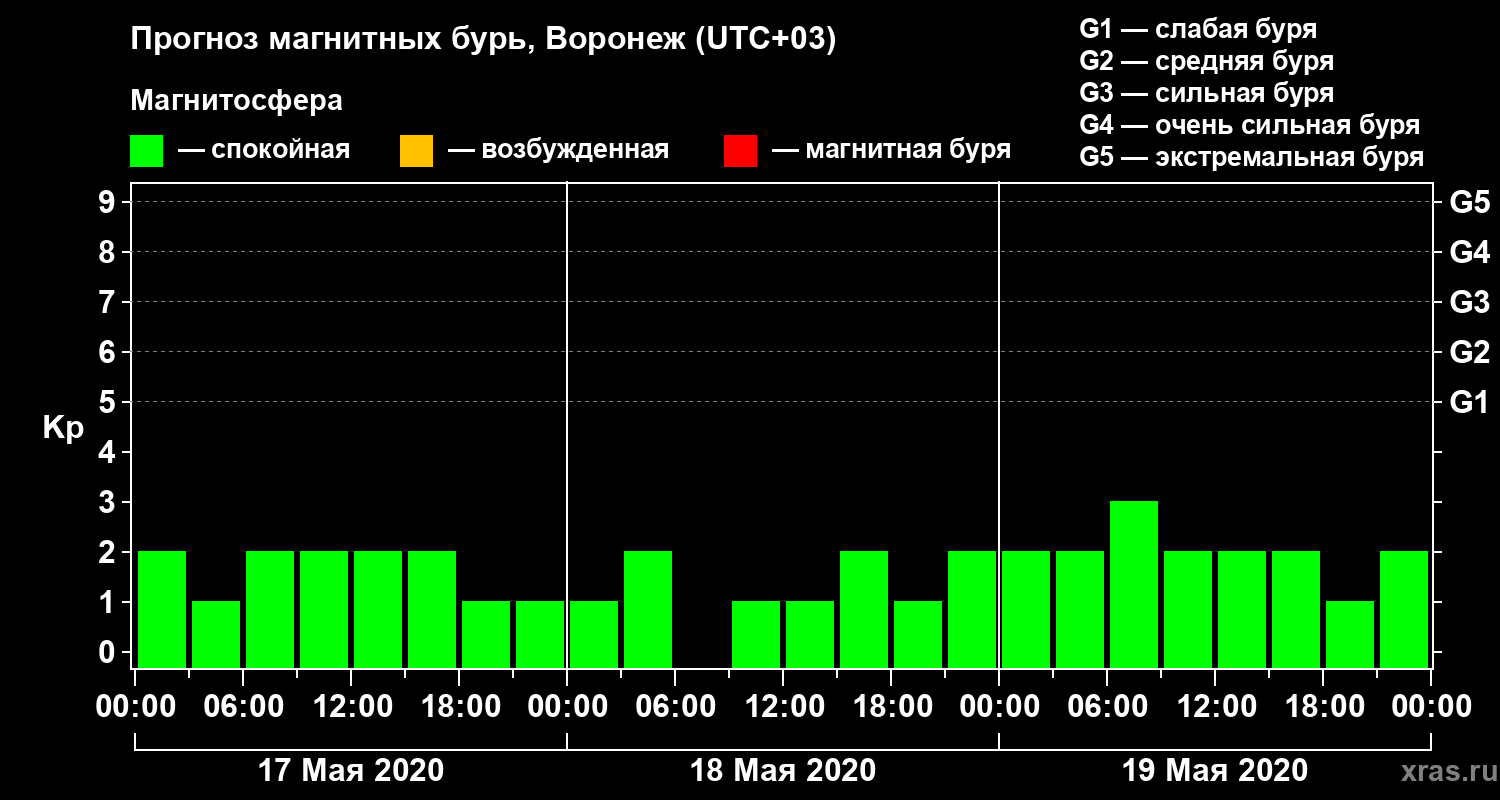 Прогноз магнитных бурь в Воронеже на 17 мая 2020 года