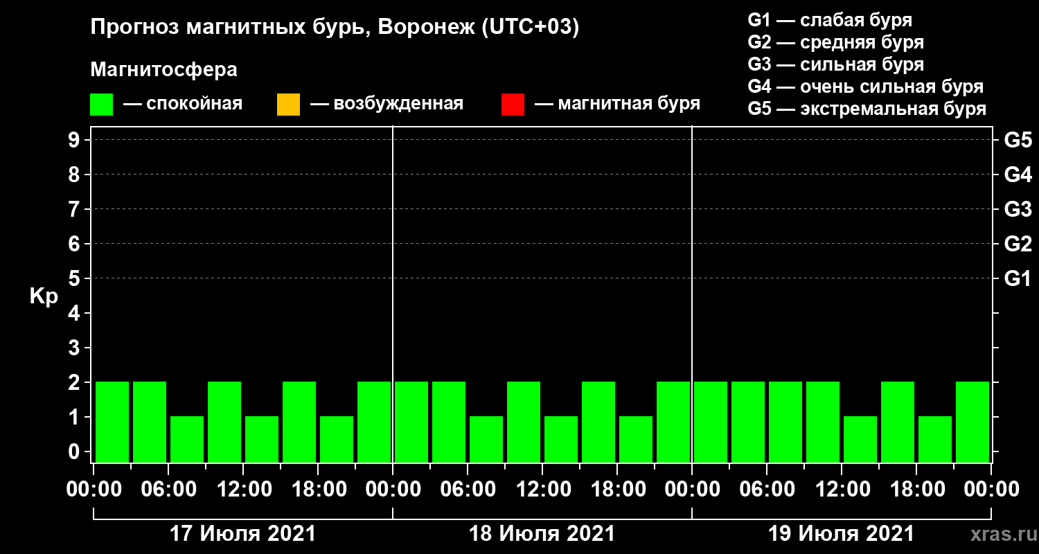 Прогноз магнитных бурь в Воронеже на 17 июля 2021 года