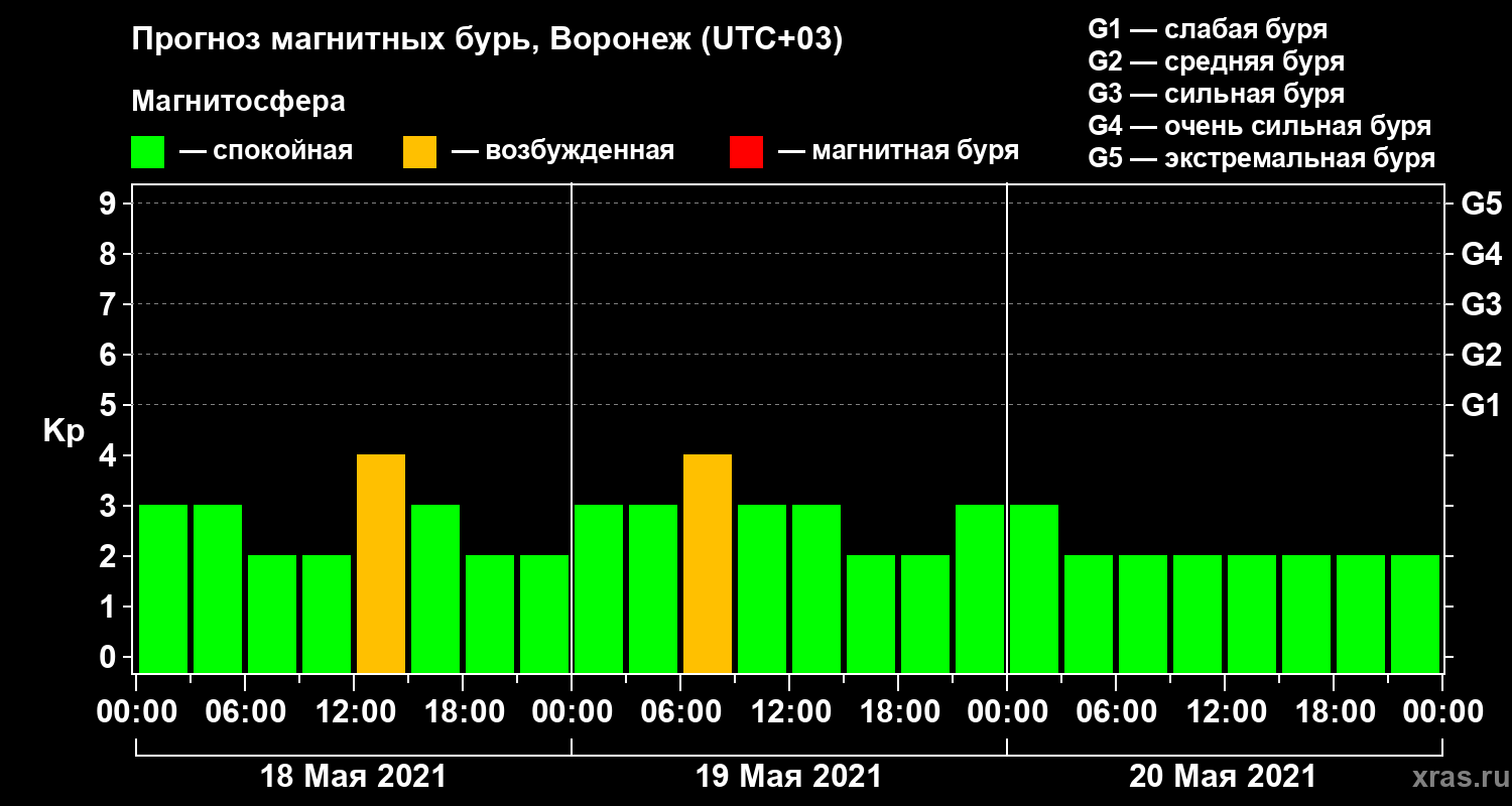 Прогноз магнитных бурь в Воронеже на 18 мая 2021 года
