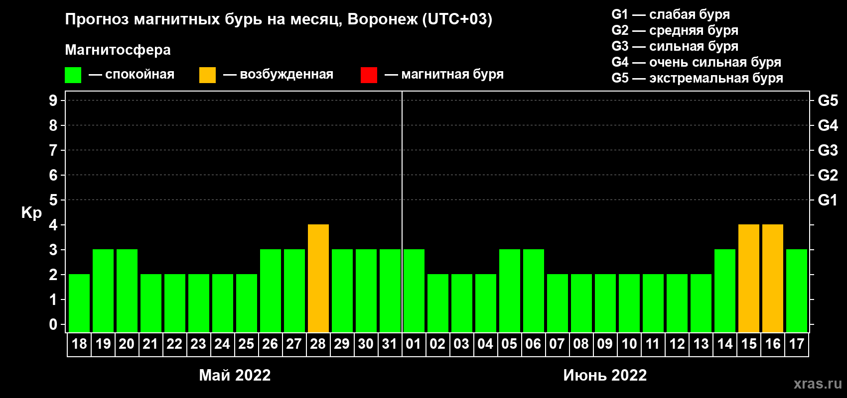 Прогноз магнитных бурь в Воронеже на 18 мая 2022 года