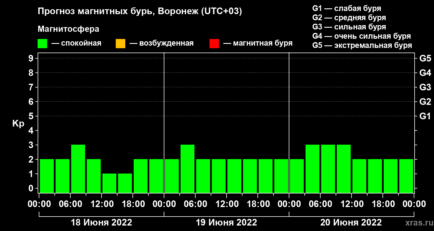 Прогноз магнитных бурь в Воронеже на 18 июня 2022 года