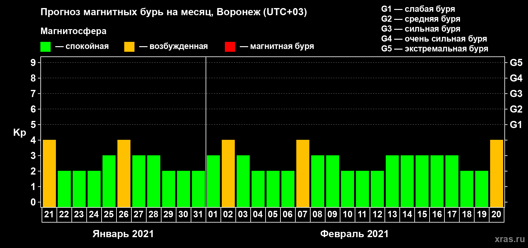Прогноз магнитных бурь в Воронеже на 21 января 2021 года