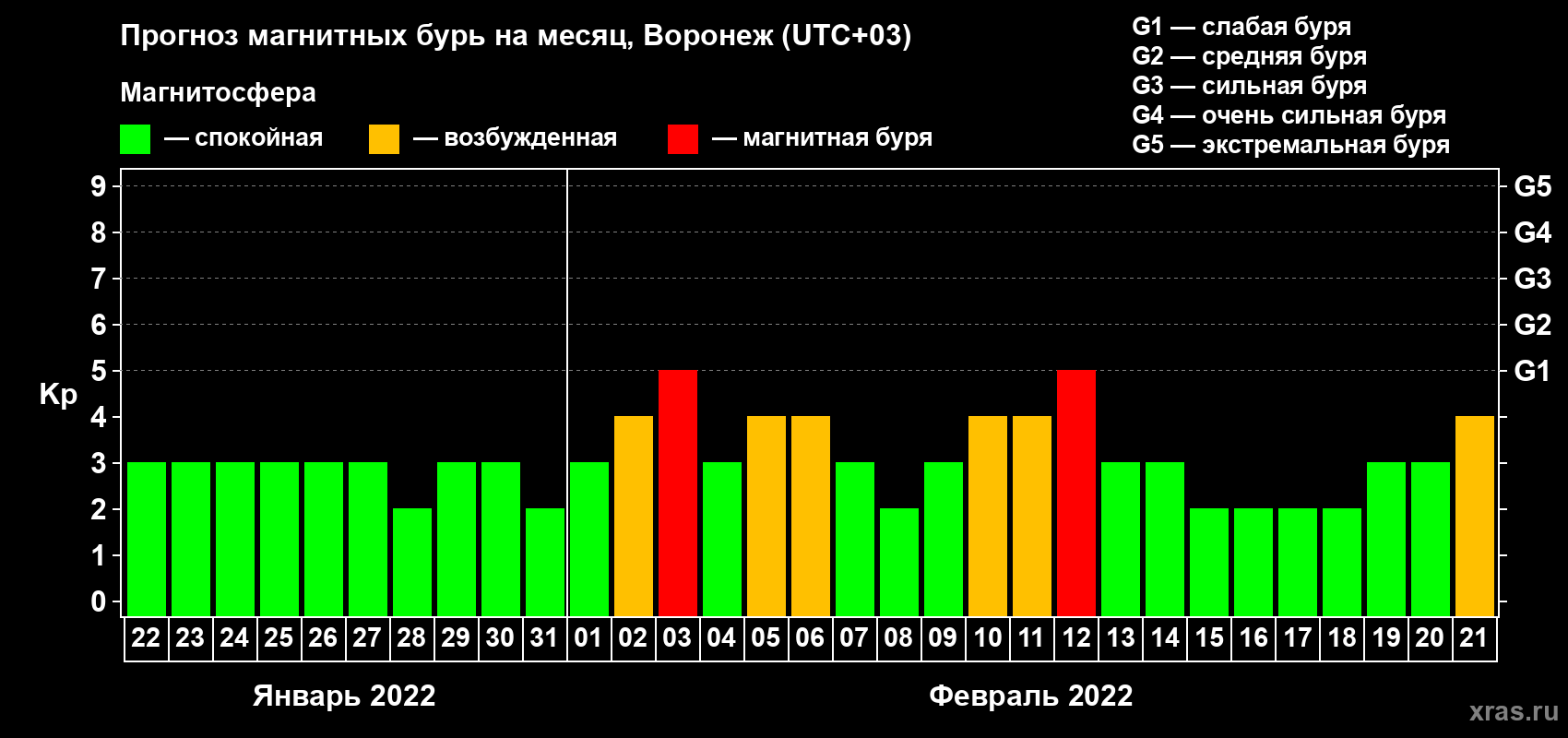 Прогноз магнитных бурь в Воронеже на 22 января 2022 года