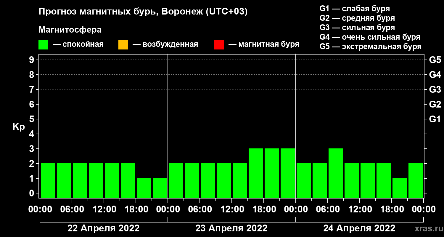 Прогноз магнитных бурь в Воронеже на 22 апреля 2022 года