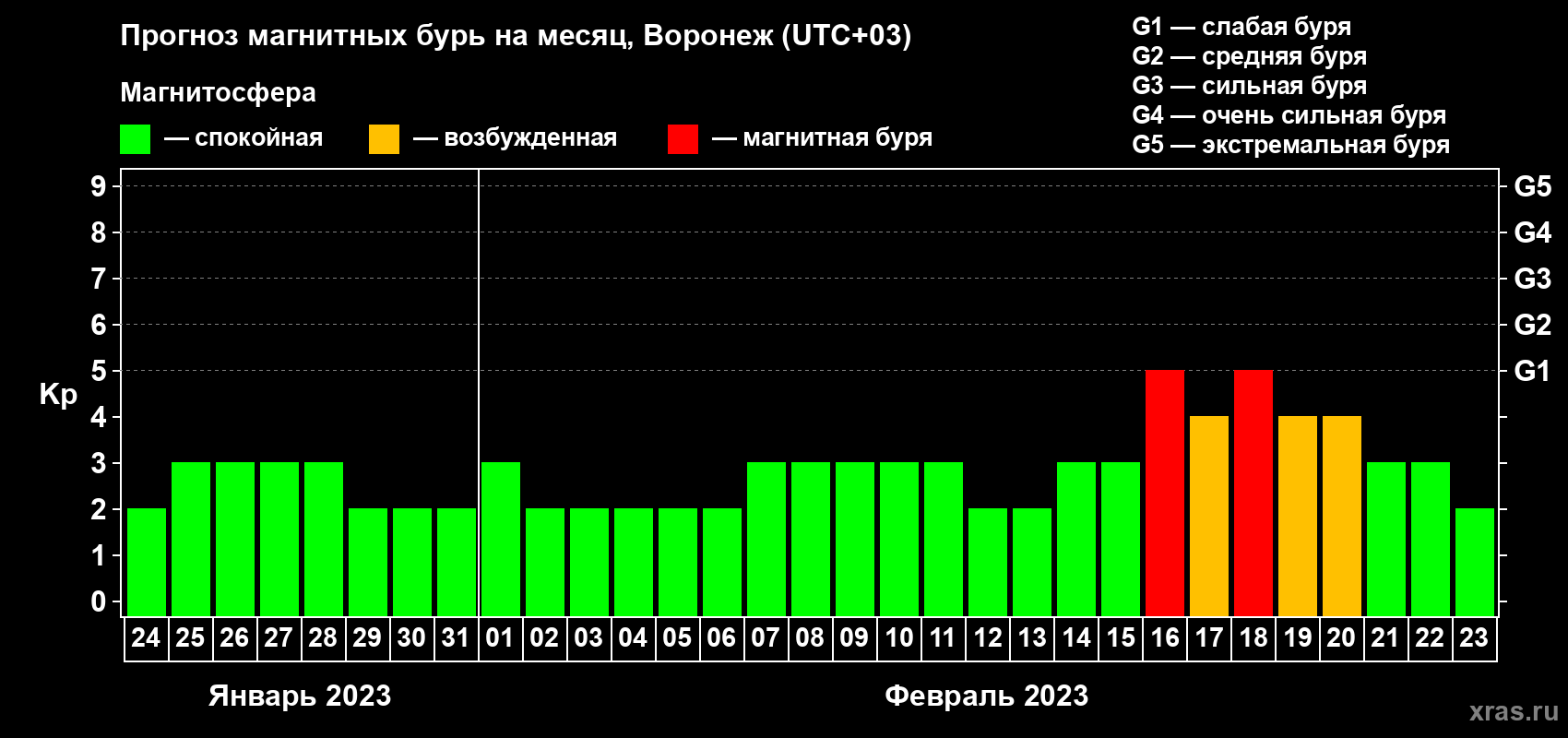 Прогноз магнитных бурь в Воронеже — 24 января 2023 года