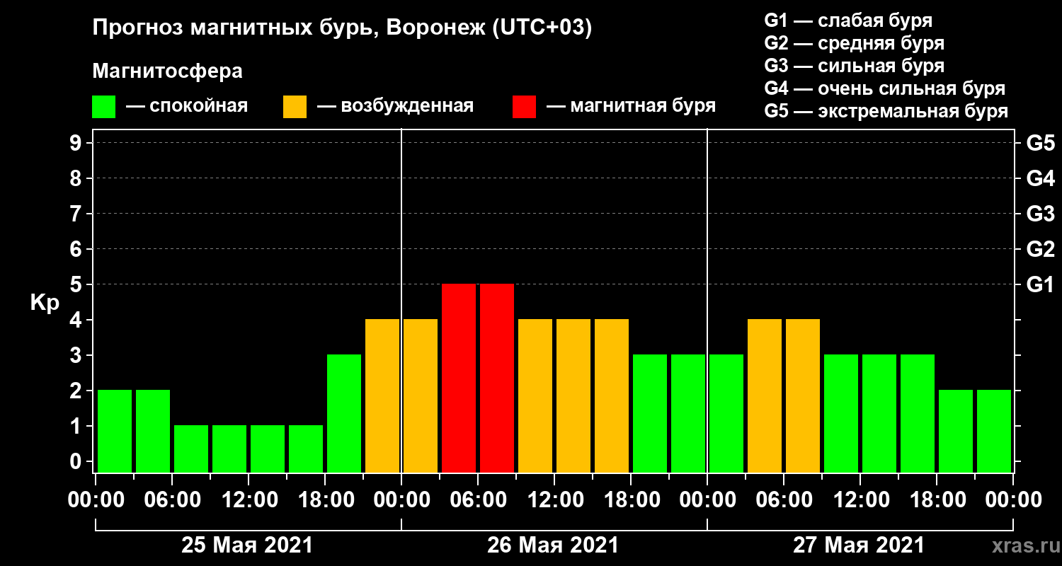 Прогноз магнитных бурь в Воронеже на 25 мая 2021 года