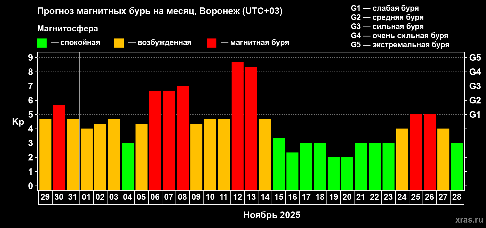 Прогноз магнитных бурь в Воронеже — 29 октября 2025 года
