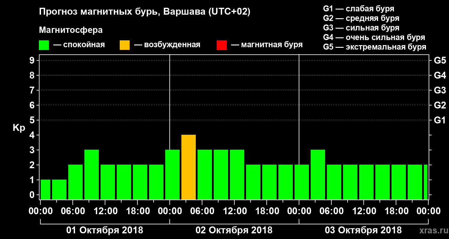 Прогноз магнитных бурь в Варшаве — 1 октября 2018 года