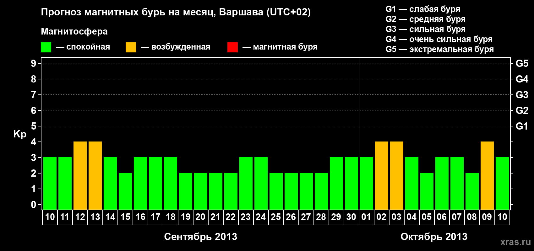 Прогноз магнитных бурь в Варшаве — 10 сентября 2013 года