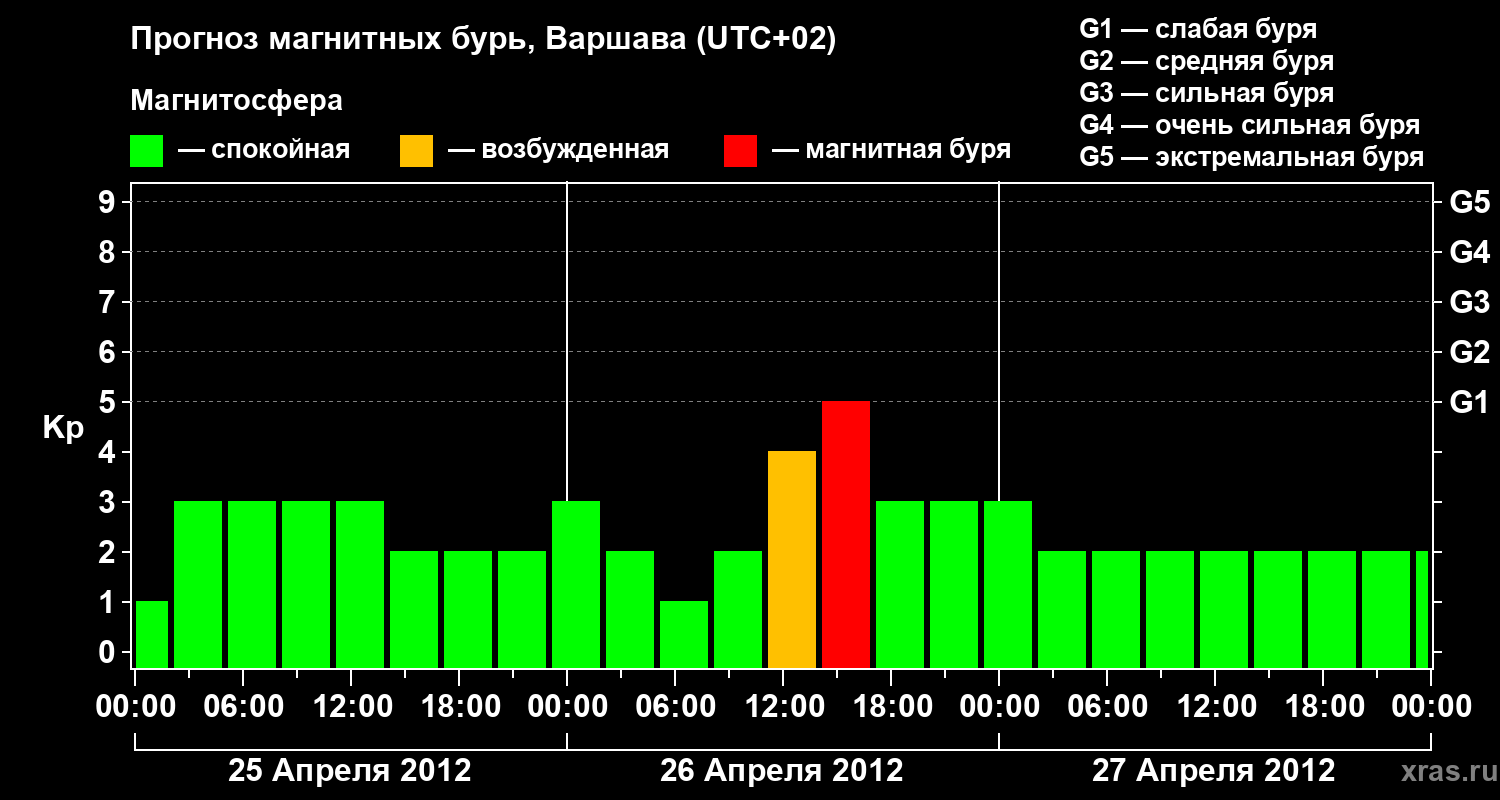 Прогноз магнитных бурь в Варшаве на 25 апреля 2012 года