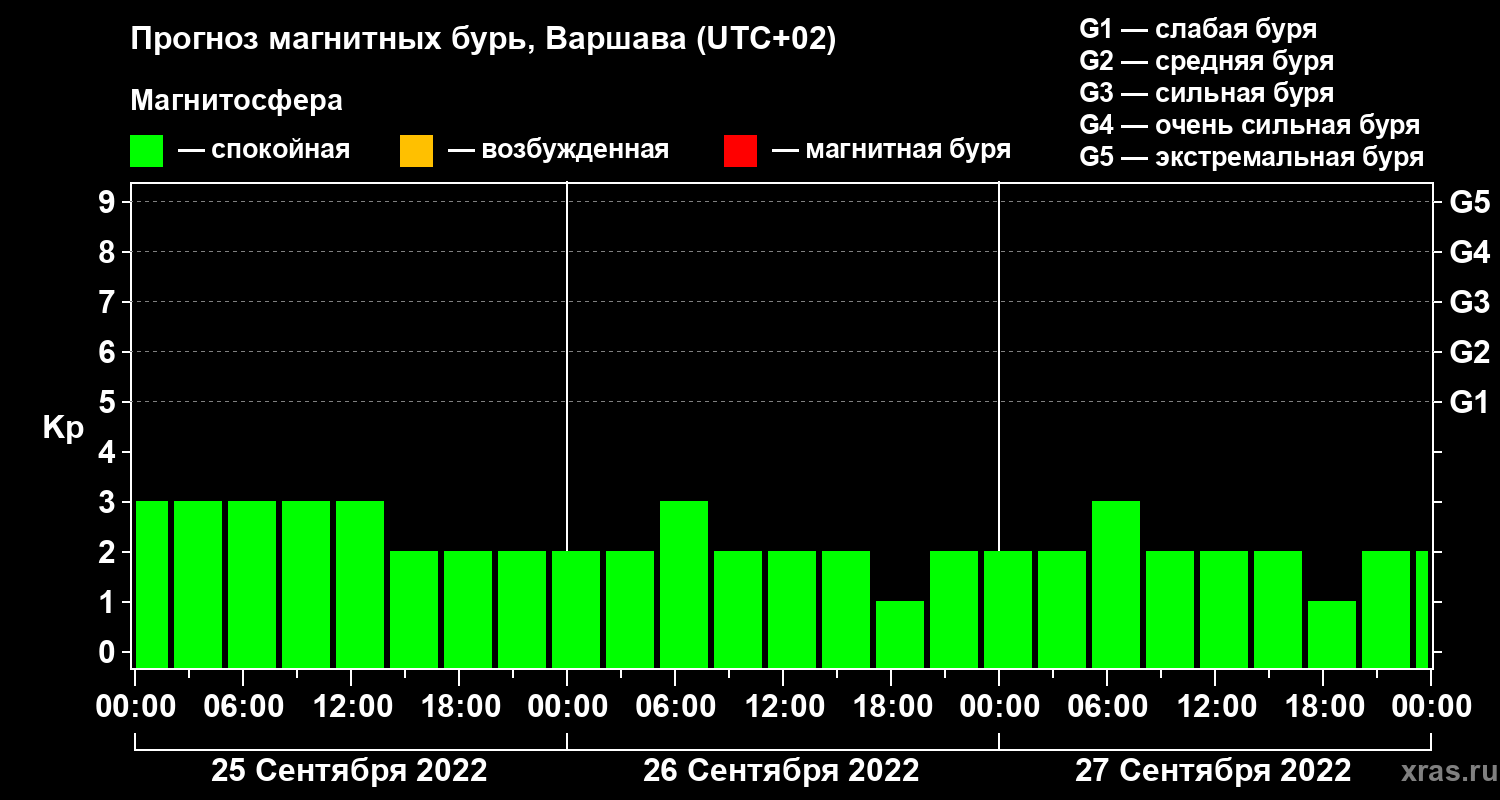 Прогноз магнитных бурь в Варшаве на 25 сентября 2022 года