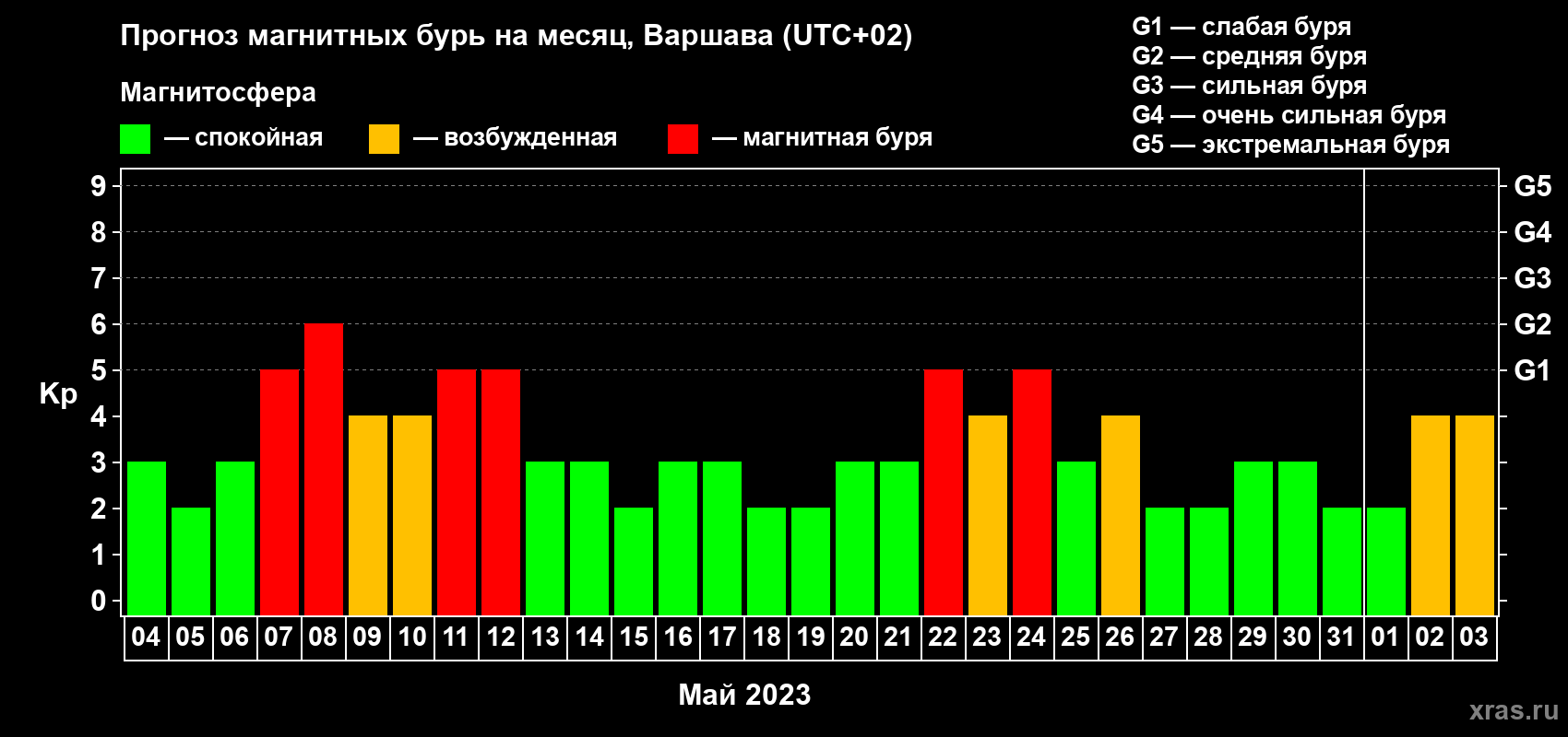 Прогноз магнитных бурь в Варшаве — 4 мая 2023 года