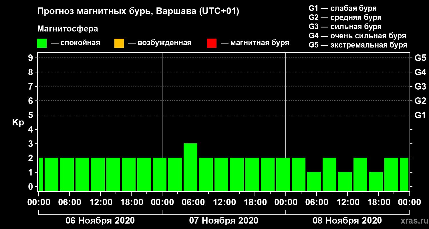 Прогноз магнитных бурь в Варшаве — 6 ноября 2020 года