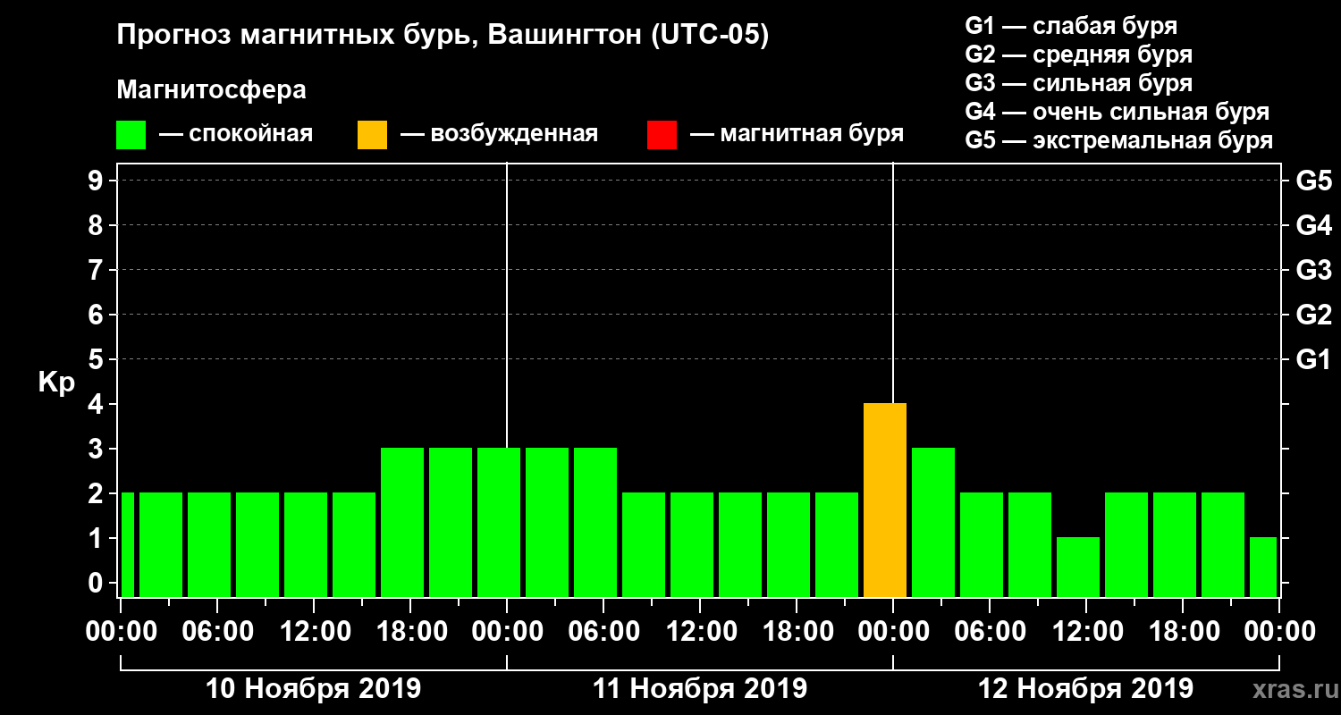 Прогноз магнитных бурь в Вашингтоне — 10 ноября 2019 года
