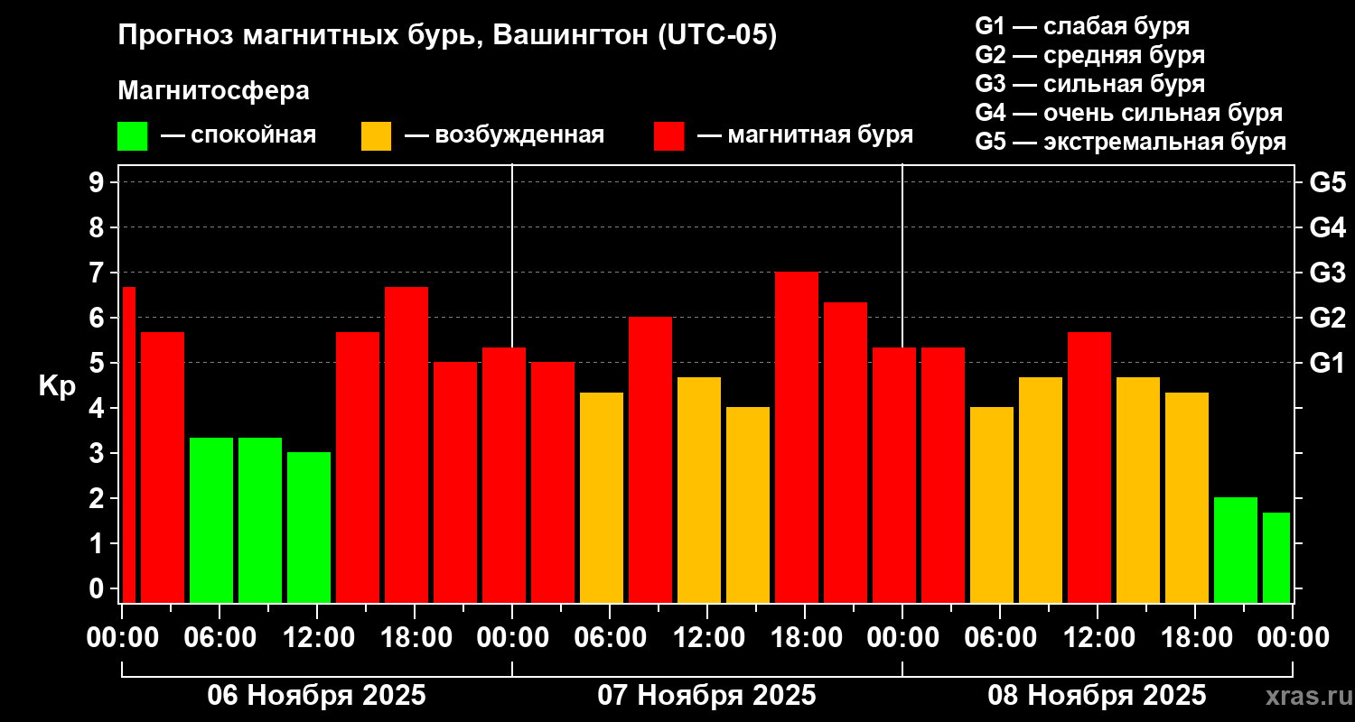 Прогноз магнитных бурь в Вашингтоне — 6 ноября 2025 года