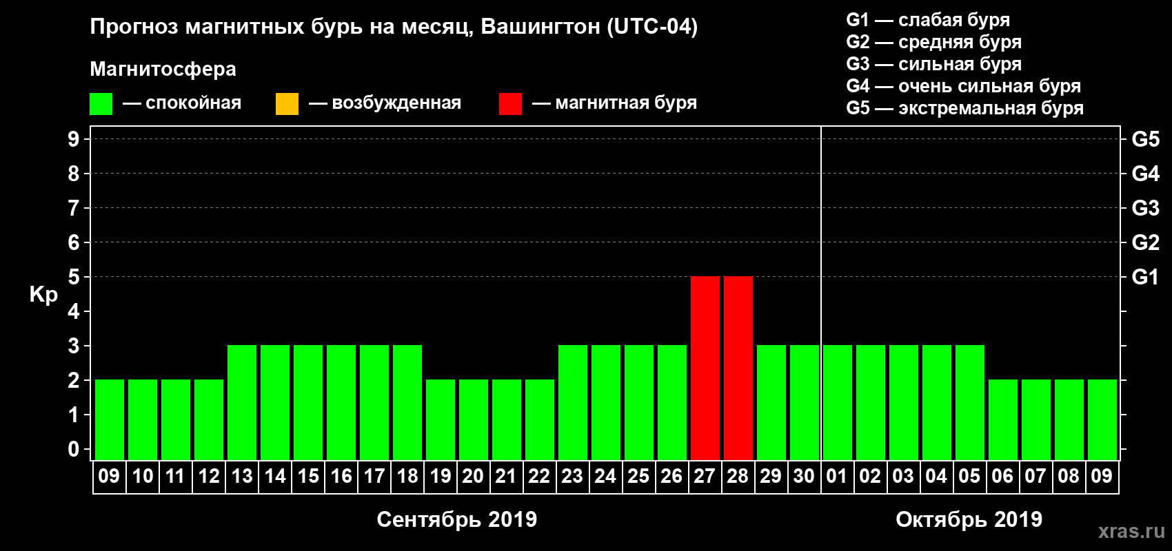 Прогноз магнитных бурь в Вашингтоне на 9 сентября 2019 года