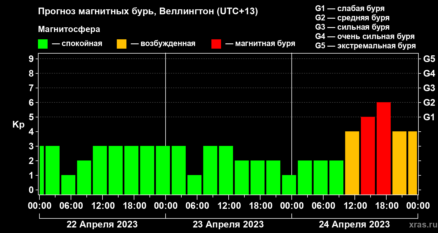 Прогноз магнитных бурь в Веллингтоне на 22 апреля 2023 года