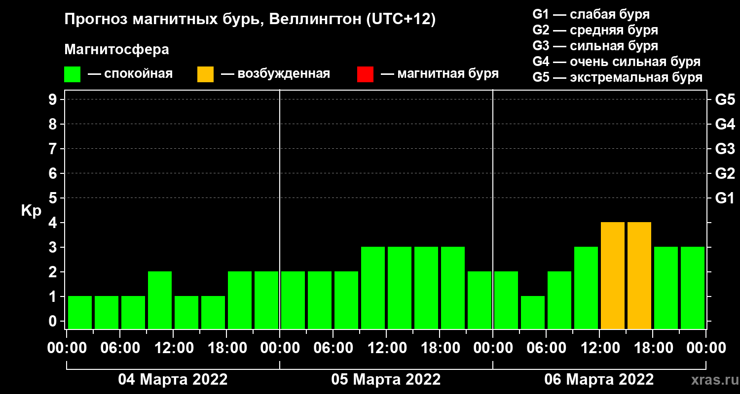 Прогноз магнитных бурь в Веллингтоне на 4 марта 2022 года