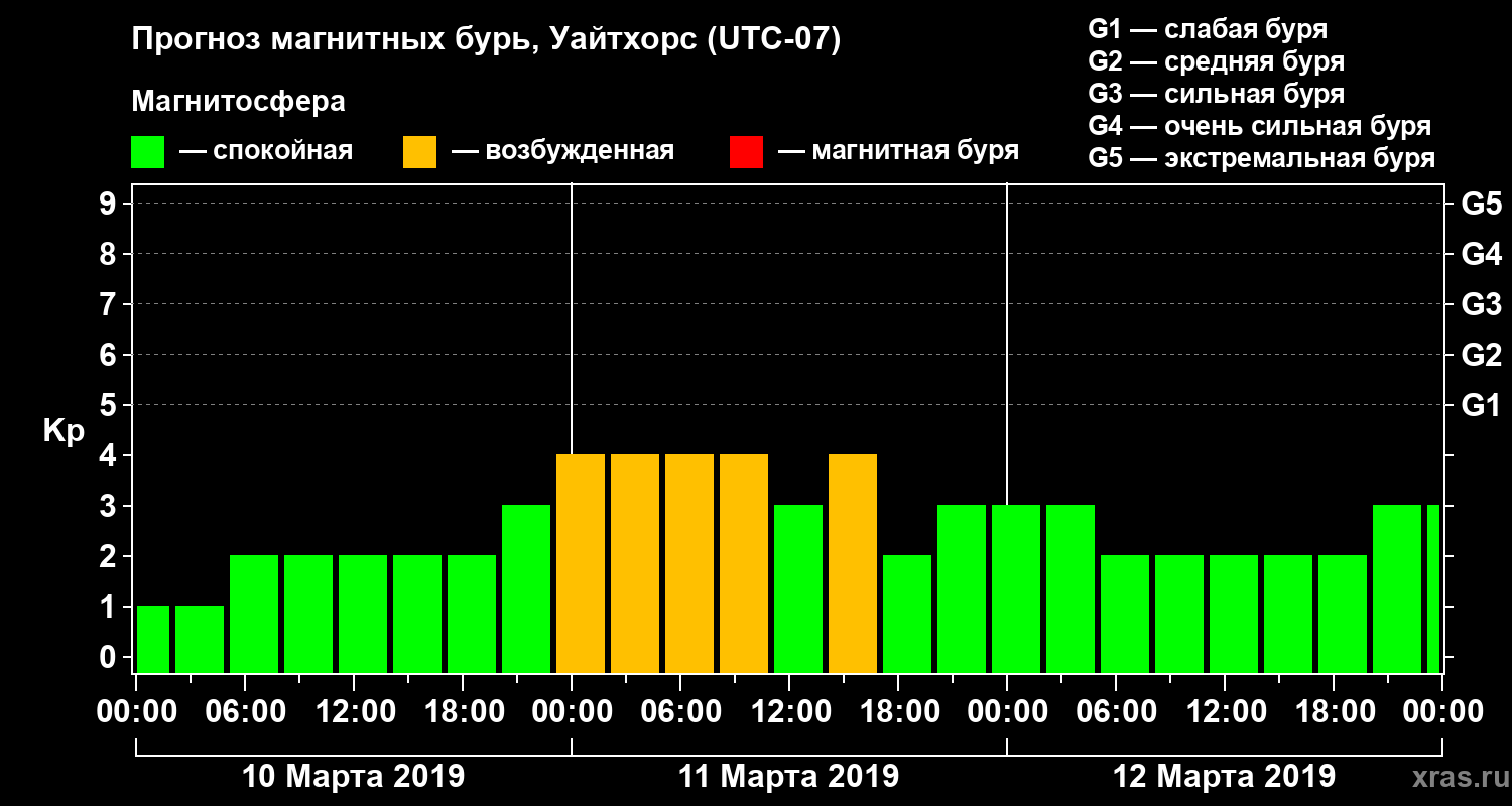 Прогноз магнитных бурь в Уайтхорсе — 10 марта 2019 года