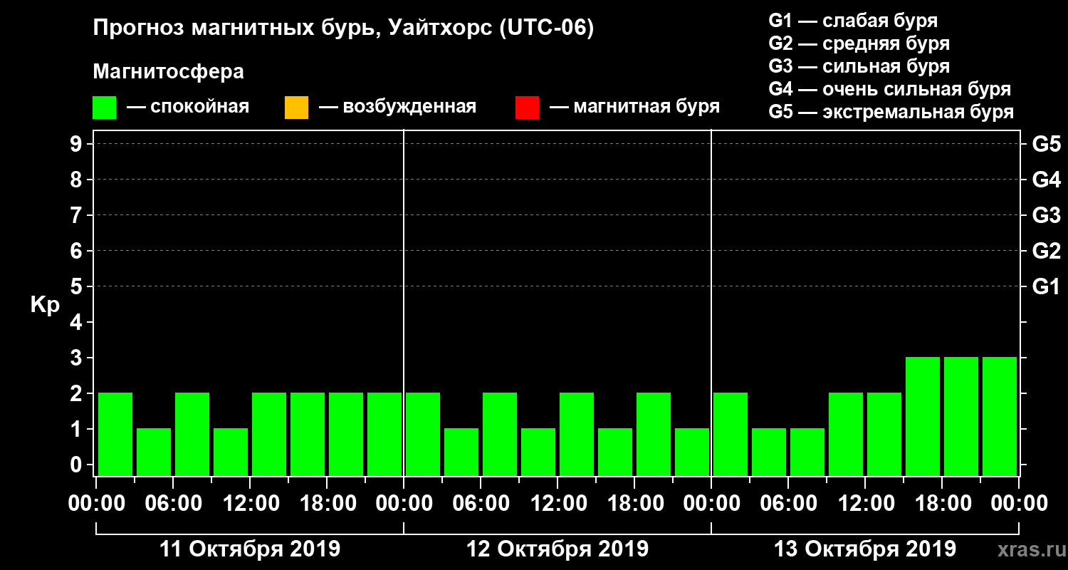 Прогноз магнитных бурь в Уайтхорсе — 11 октября 2019 года