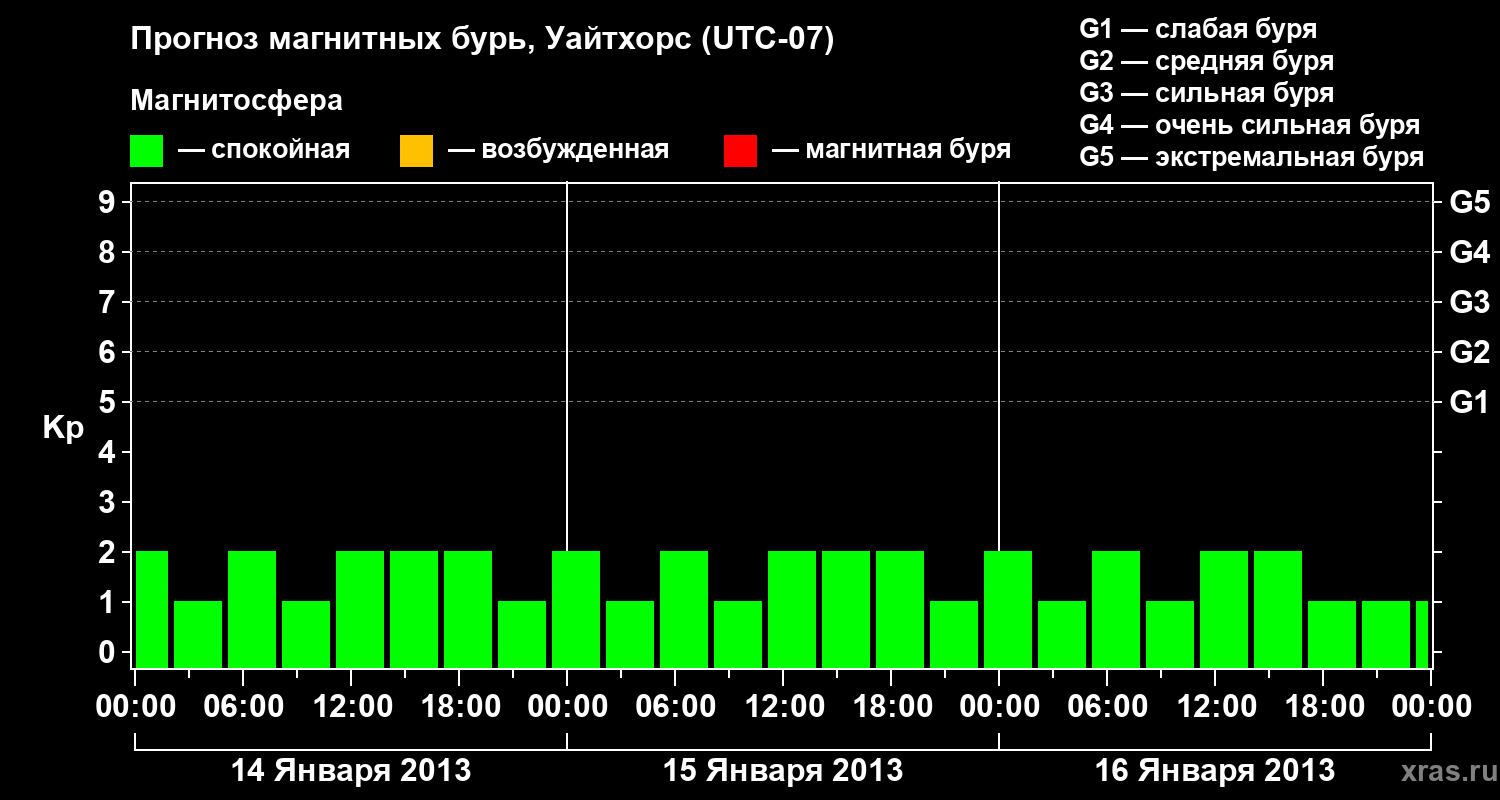 Прогноз магнитных бурь в Уайтхорсе — 14 января 2013 года