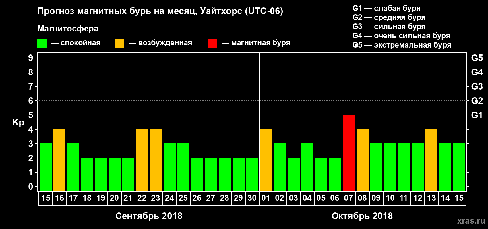 Прогноз магнитных бурь в Уайтхорсе на 15 сентября 2018 года