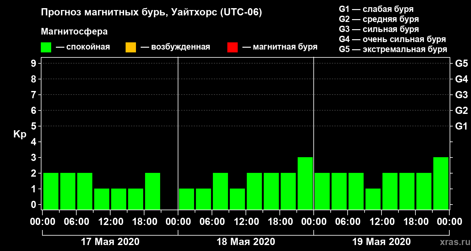 Прогноз магнитных бурь в Уайтхорсе на 17 мая 2020 года