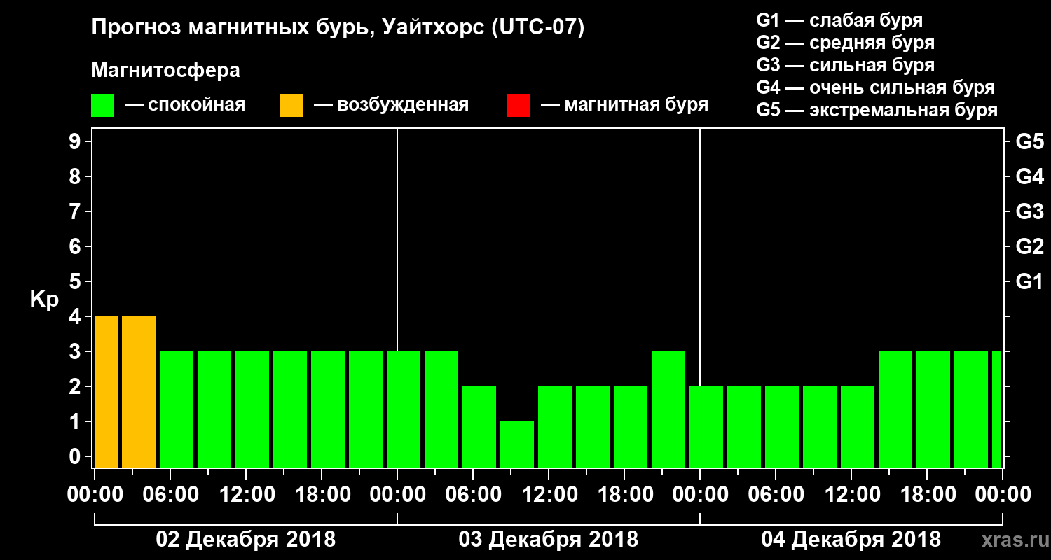 Прогноз магнитных бурь в Уайтхорсе — 2 декабря 2018 года