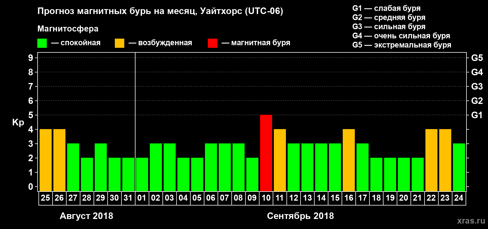 Прогноз магнитных бурь в Уайтхорсе — 25 августа 2018 года