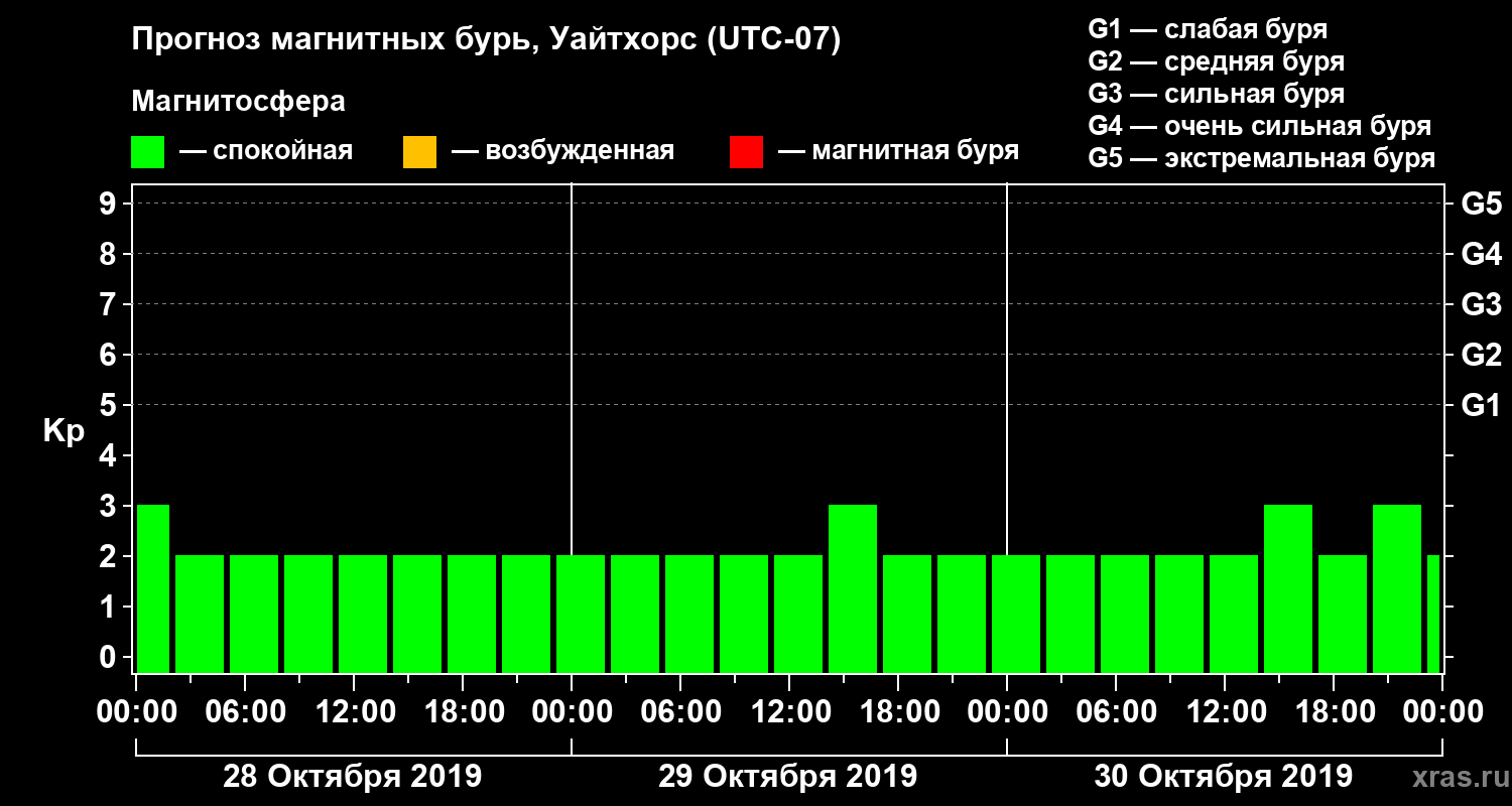 Прогноз магнитных бурь в Уайтхорсе — 28 октября 2019 года